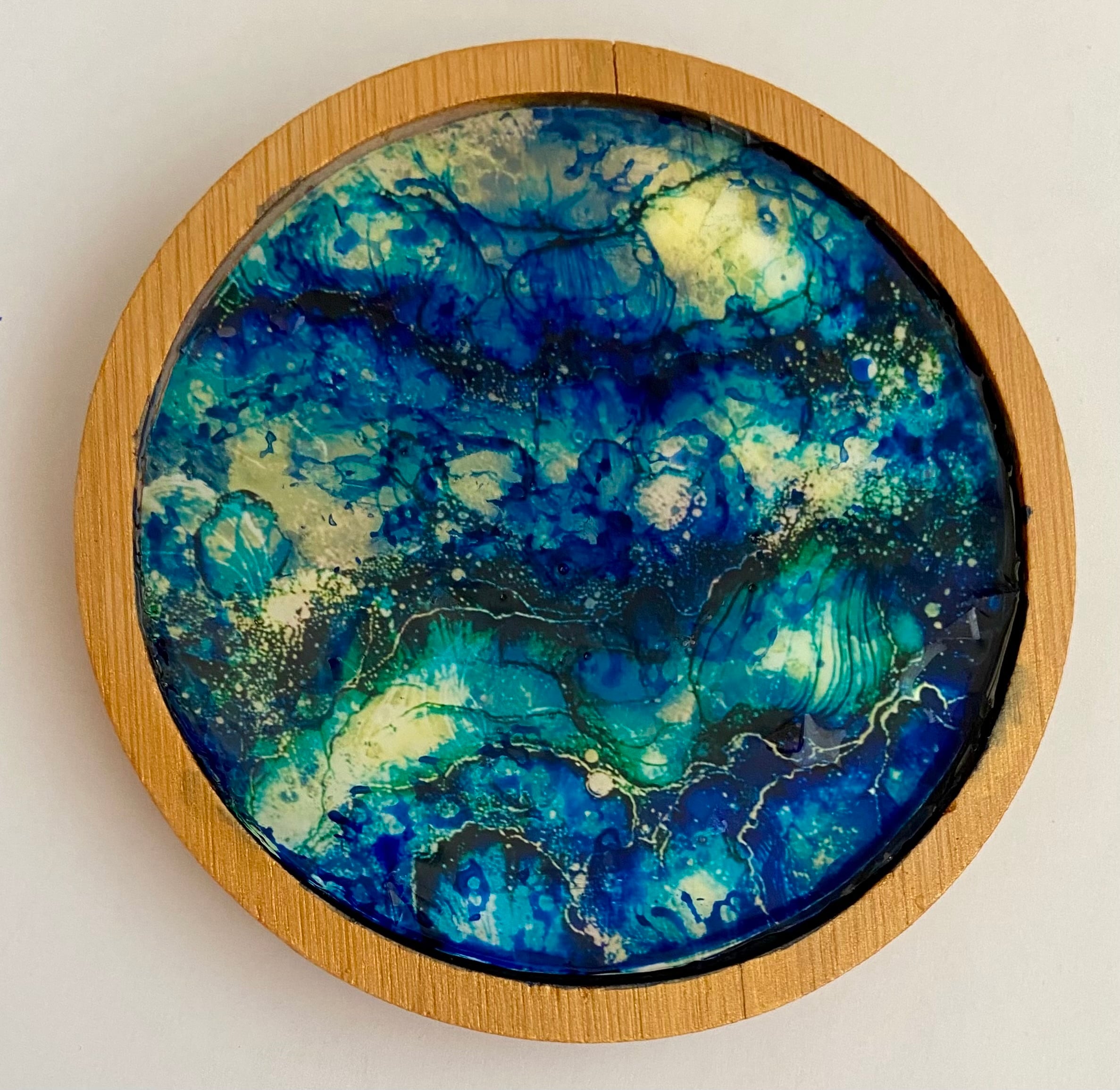 まるで地層みたいな波の様な 新海のような森の青々しさのような そんな様子を描いてみました。
